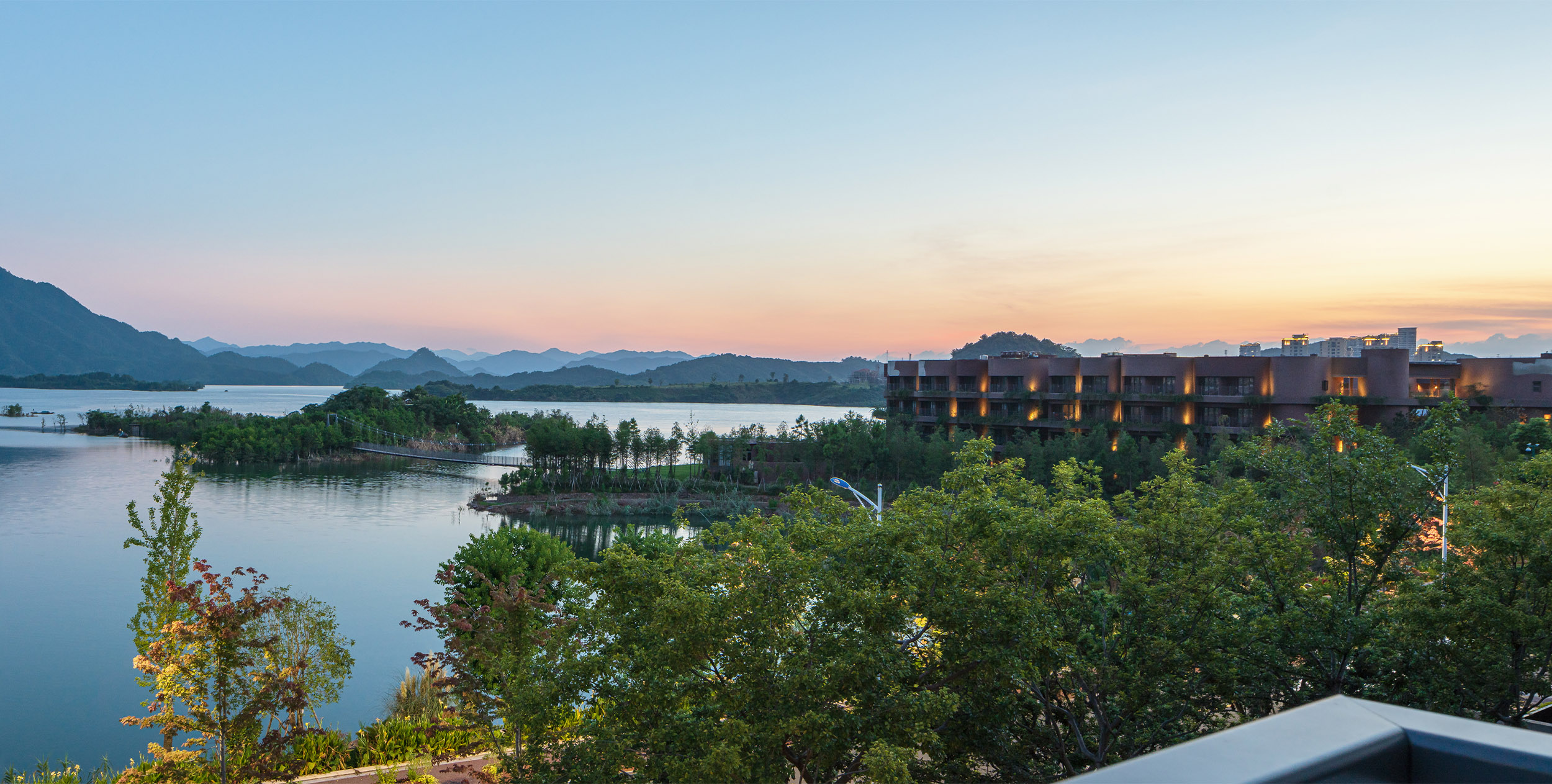 When the sky is clear, push open the door of the room and stand on the terrace, harvesting the gift of nature between the mountains and water of Qiandao Lake.