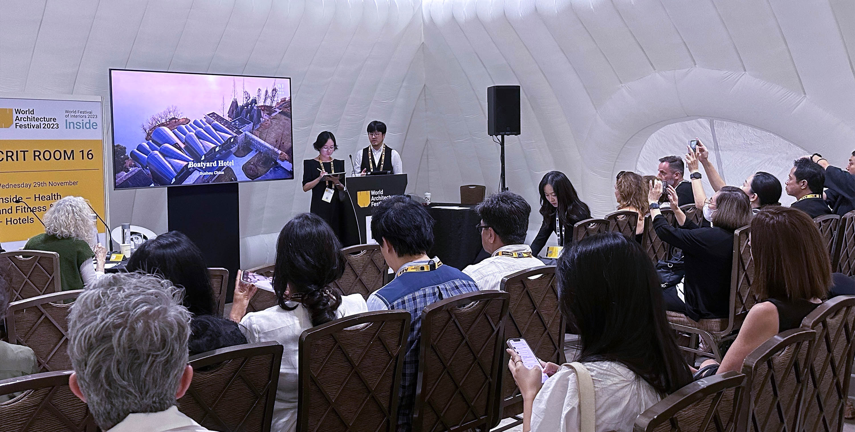 From 29th November to 1st December, Mr. Hu Zhile, Founder/Design Director of WJ Studio, was invited to participate in WAF World Architecture Festival/INSIDE World Festival of Interiors in Singapore, and gave a live presentation and defense of the shortlisted project, "Boatyard Hotel".